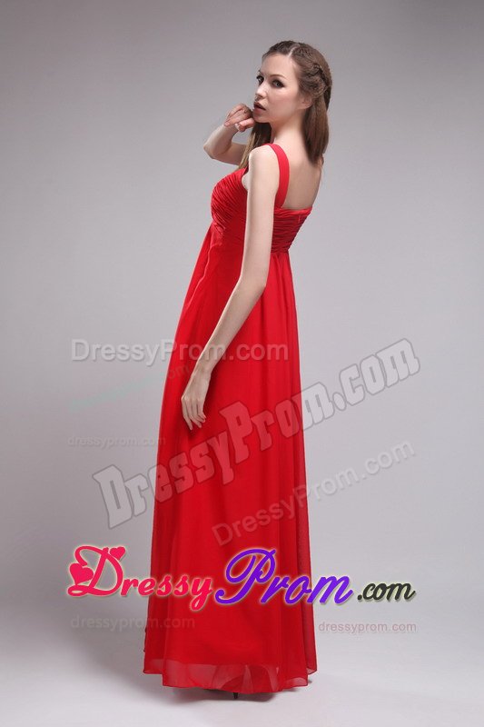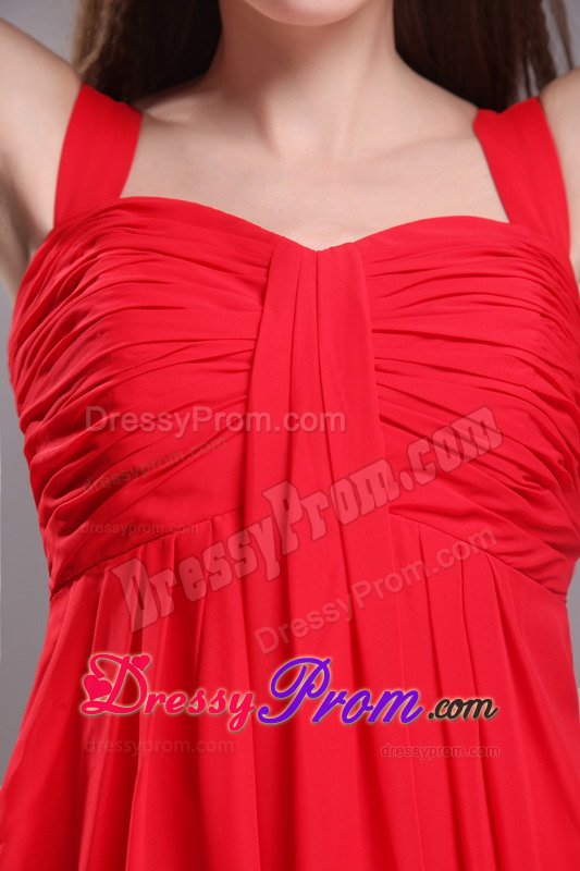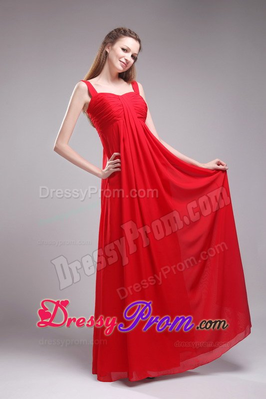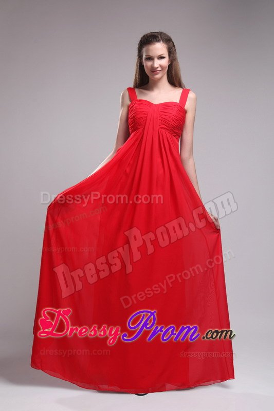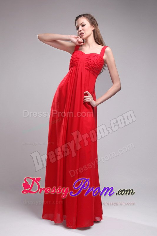 The clean, soft lines created by simple dresses never go out of style. This dress is an example of what we mean. It features a straps bodice with ruchings embellishments the midsection. The zipper up back highlights your slim figure. The skirt falls in clean, smooth lines to the floor, wrapping your legs in lovely chiffon. Simplistic elegance at its best!