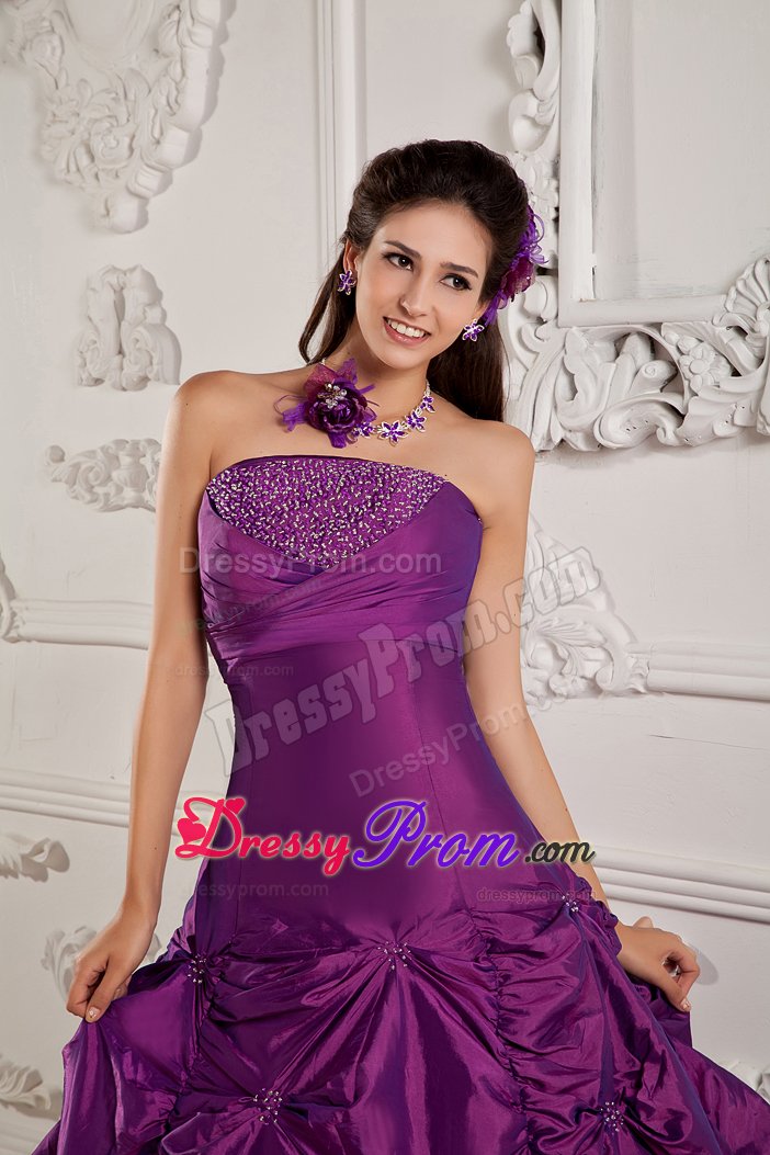 The strapless beaded ruffles floor length taffeta gown is your perfect choice to attend ball, wedding and party.Fitting bodice design with beaded bust makes the gown so beautiful and sexy that you can gain more attention and no matter what you attend,you will become the spotlight. The clean midriff shows off your waistline. The full ball gown skirt adorned with pick ups and the lace up back finishes the look.
