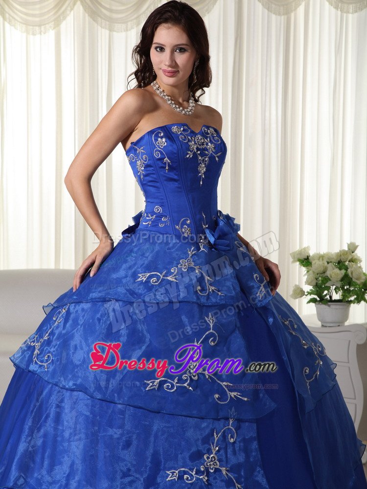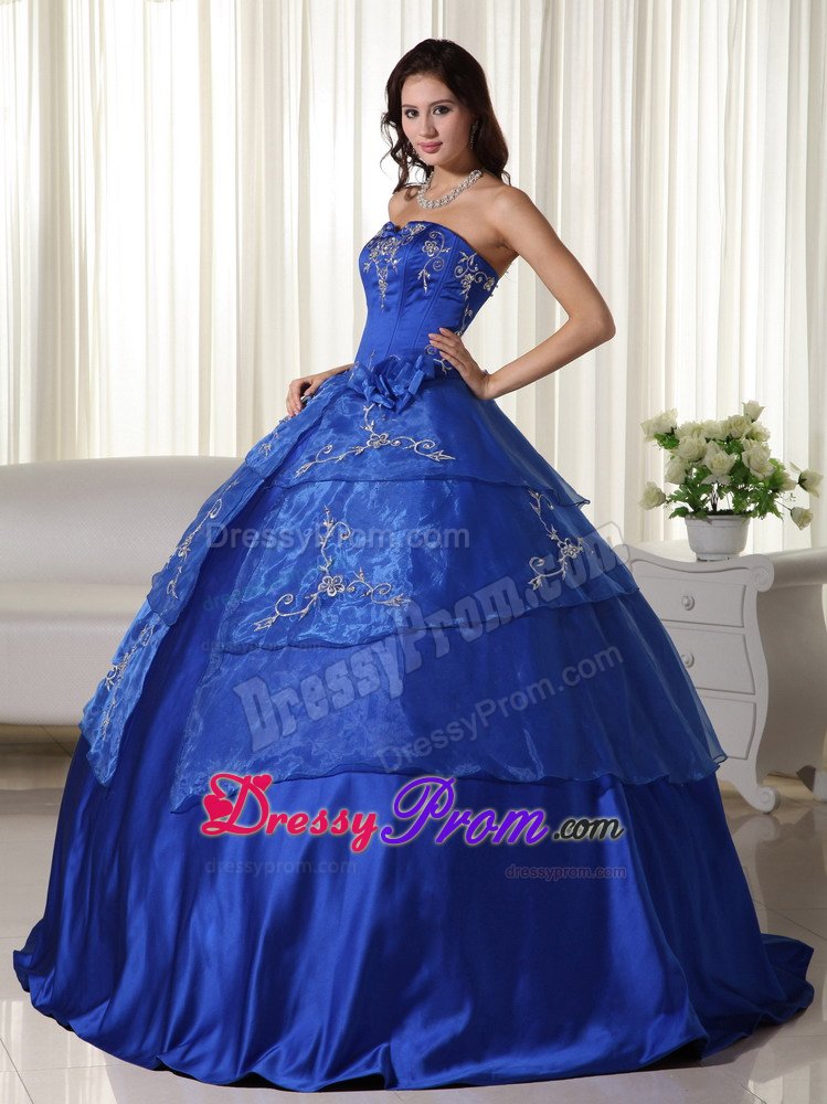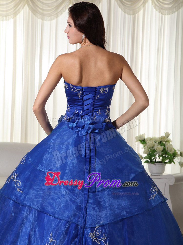 Be cute and elegant! This fabulous ball gown features a strapless neckline with a small V in the middle of the bustline. The fitted bodice is embellished with beautiful floral embroidery which will add elegance and modesty to this gorgeous gown. A cute handle flower decorates the waist and gives you a perfect view. The puffy skirt is quite wonderful for the tiers of organza covered on the skirt and the floral embroidery encrusted on the organza fabric. Lace up back for perfect fit and completes the whole design.