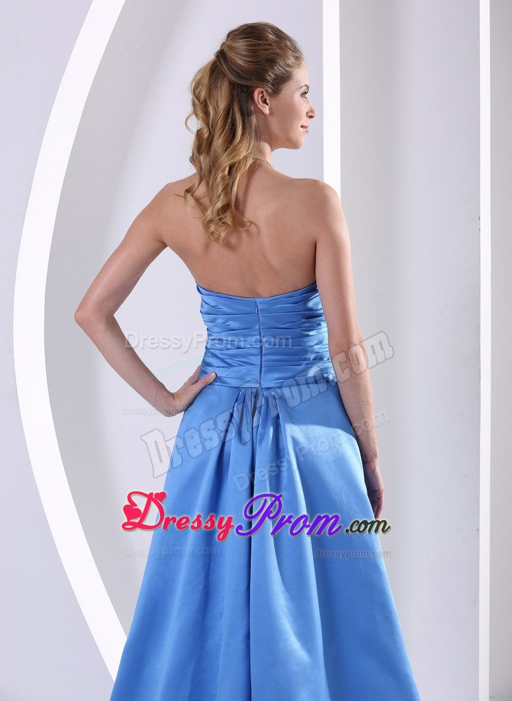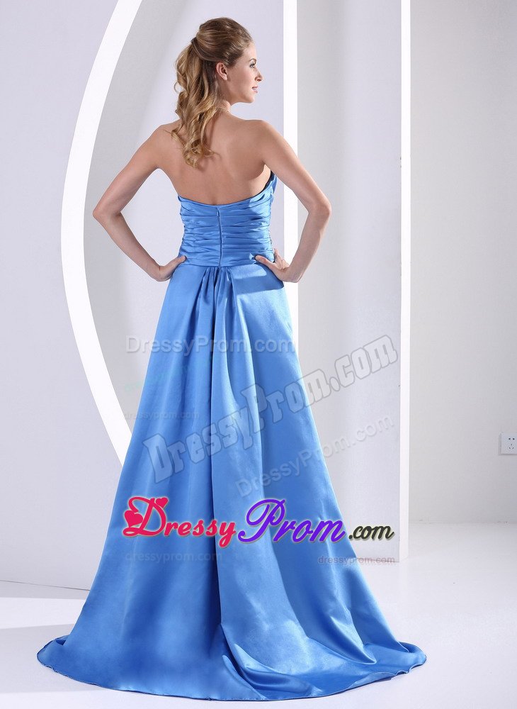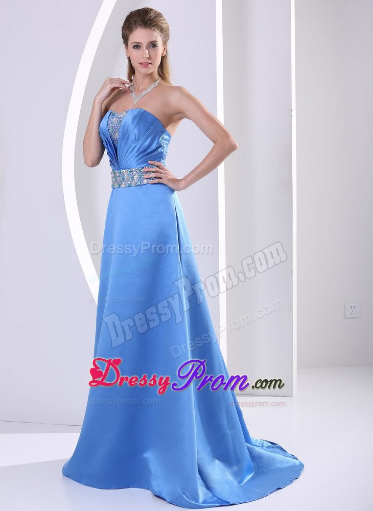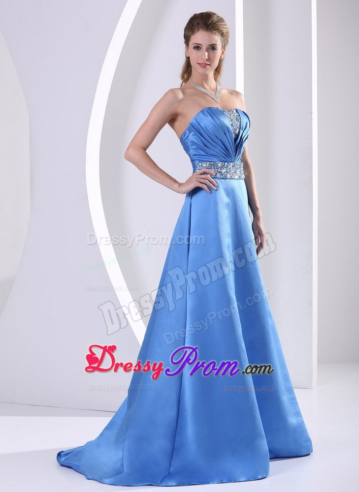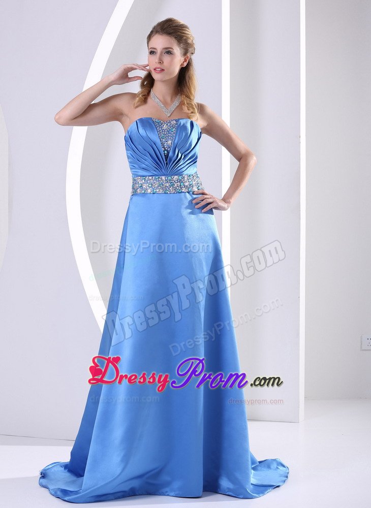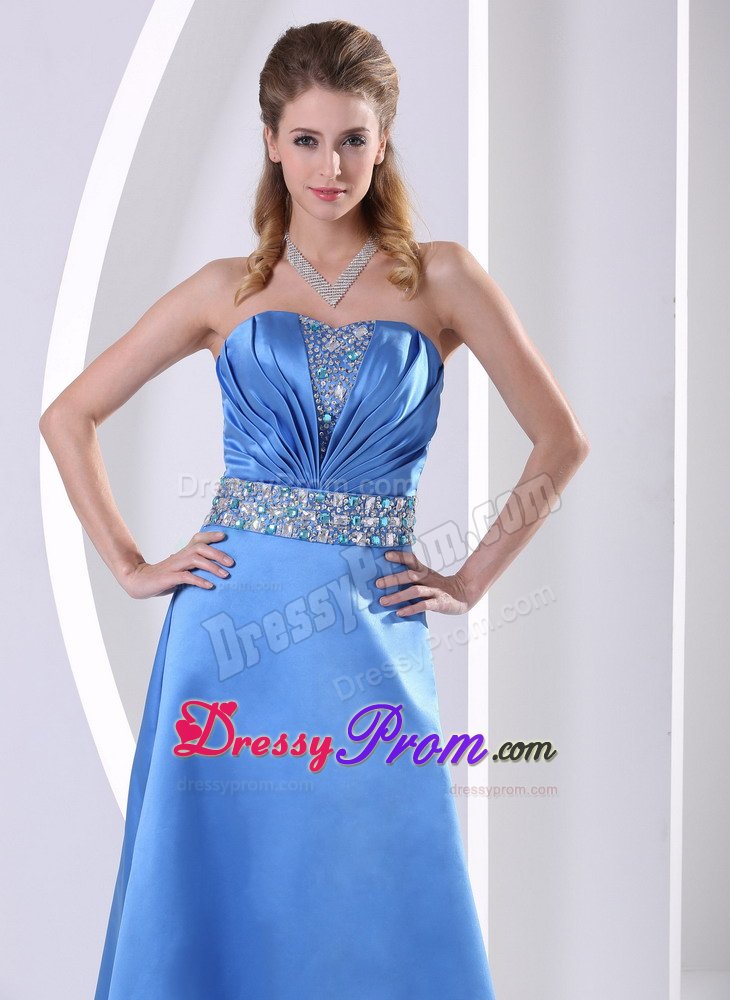 This is a beautiful gown and would make a lovely addition to anyone's formal wardrobe. It features a strapless bodice with a sweetheart neckline and lovely pleats. A thick, glittering band that ties in the middle adorns your waistline. The A-line skirt is straight, but fitted. A simple zipper up completes the look. If you're a fan of the fancier, finer things in life � this might just be the dress for you.