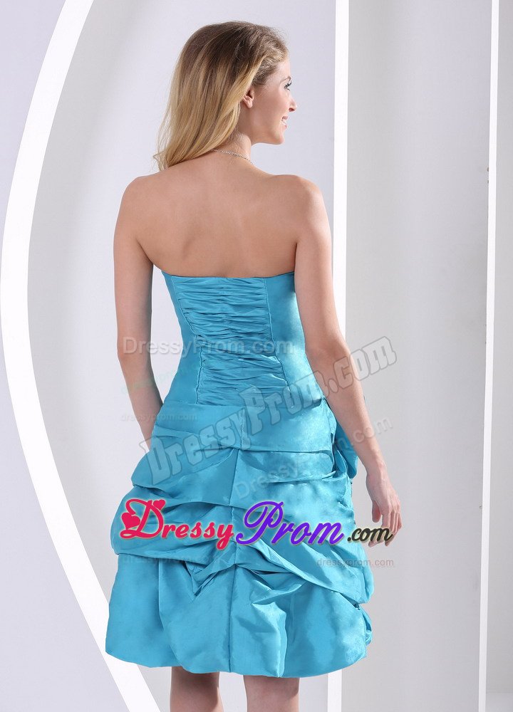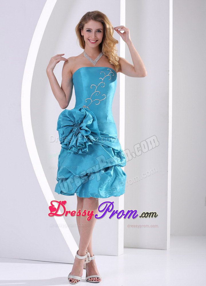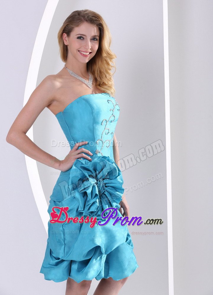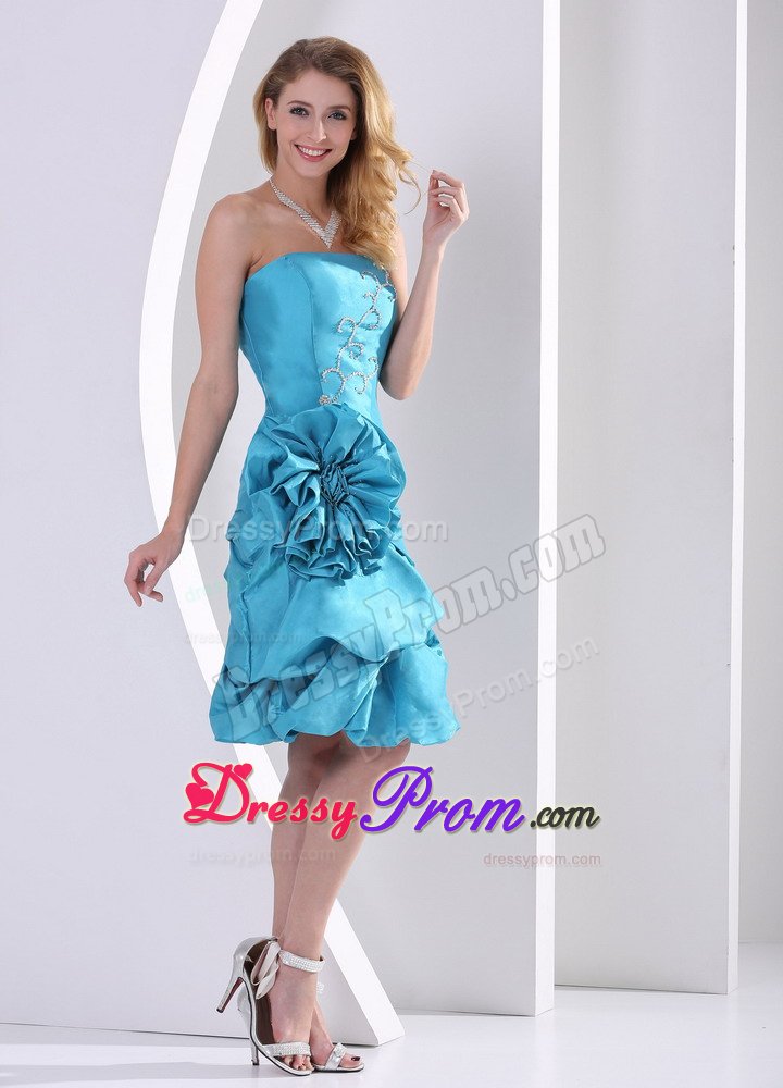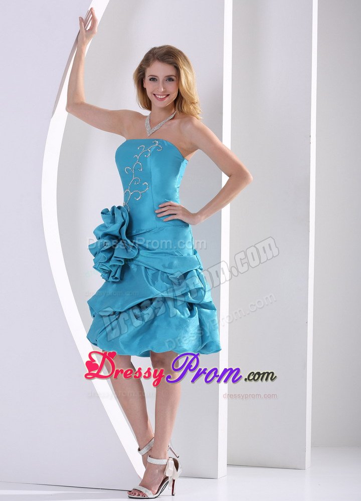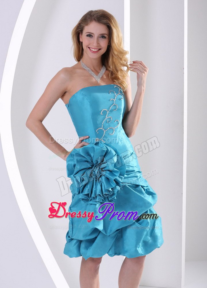 Fancinating and enchanting. Elegance and grace is written all over this dress. Strapless dress enjoys most popularity in the market. As is often seen,stars often choose strapless dresses to attend formal events. The skirt is adorned with pick-ups. The skirt is also embellished with a big flower on the hip area. A supreme dress for those occasions when you are longing for spotlight.