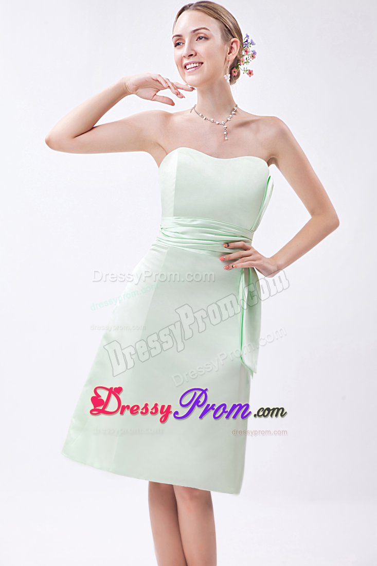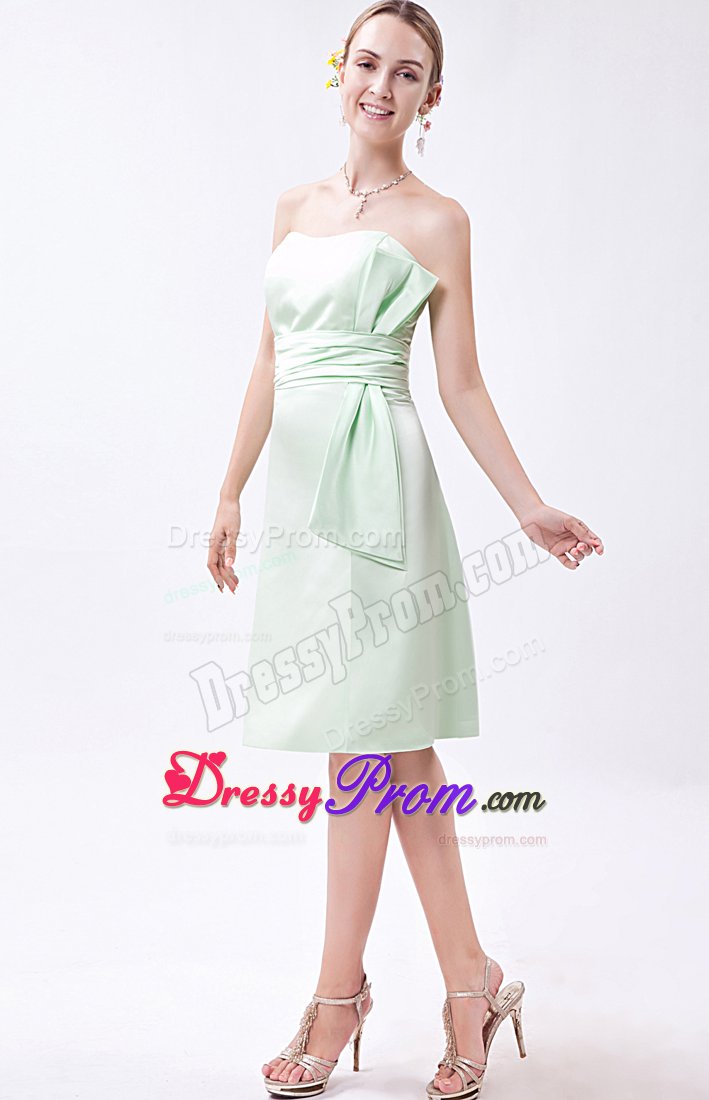 One of the great things about sheath-style dresses is that they are so versatile. You can dress them up or down as much as you'd like, using a variety of accessories. This one features a pretty strapless bodice with a waist sash made from coordinating ribbon. The hidden zipper and the tide hem show us a great sense of simpleness and elegance.