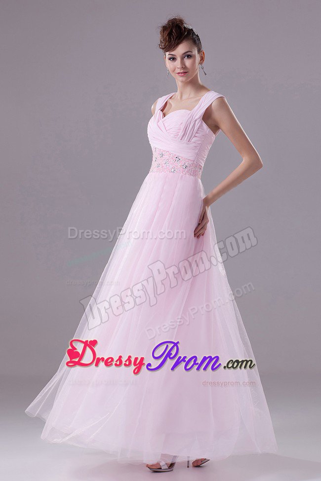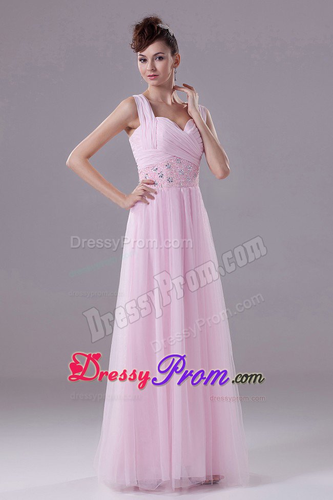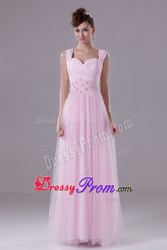 Pink dresses are quite lovely! This pretty prom dress is one example of how fabulous pink can be. It features a fancy ruched bodice with straps and sweetheart bustline. Encrusted with shining beads, the mid section of the bodice accented. The flowy floor length skirt gives a flowing and airy fall to the floor, which moves beautifully with you when you walk. Just a lovely gown for any occasion or event.