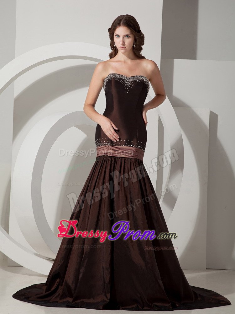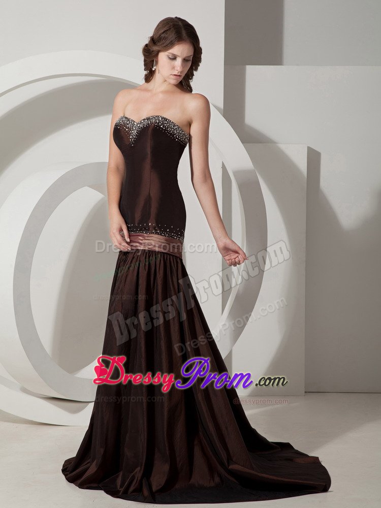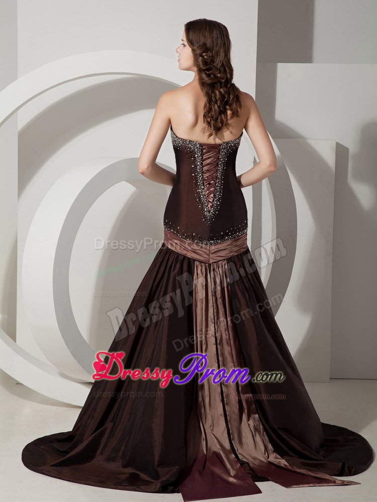Sexy, sultry and stunning! Just a few words that describe this gorgeous dress. It features a sweetheart neckline that is adorned with glittering beadings as well as along the lace up back.Additionally, a band goes around the hips and combines to the another two band just like a large bow that adds more interests. And The mermaid-style skirt slightly flares out from the knees to the floor, leaving a sweeping train in the back. Elegant and chic.