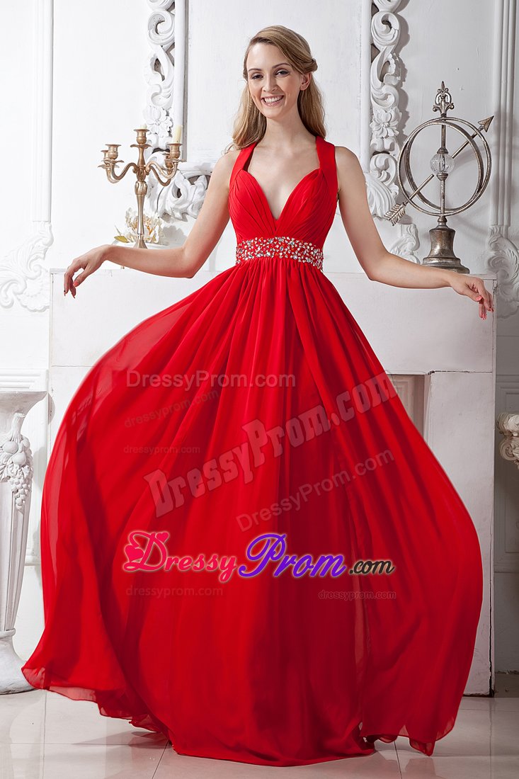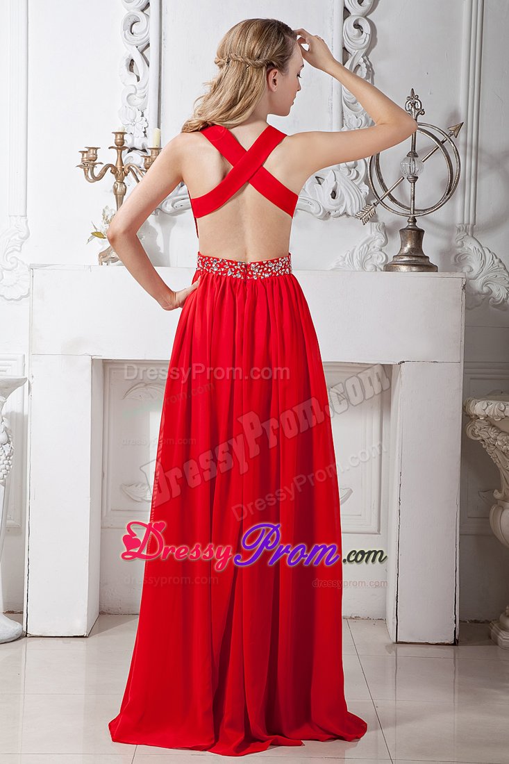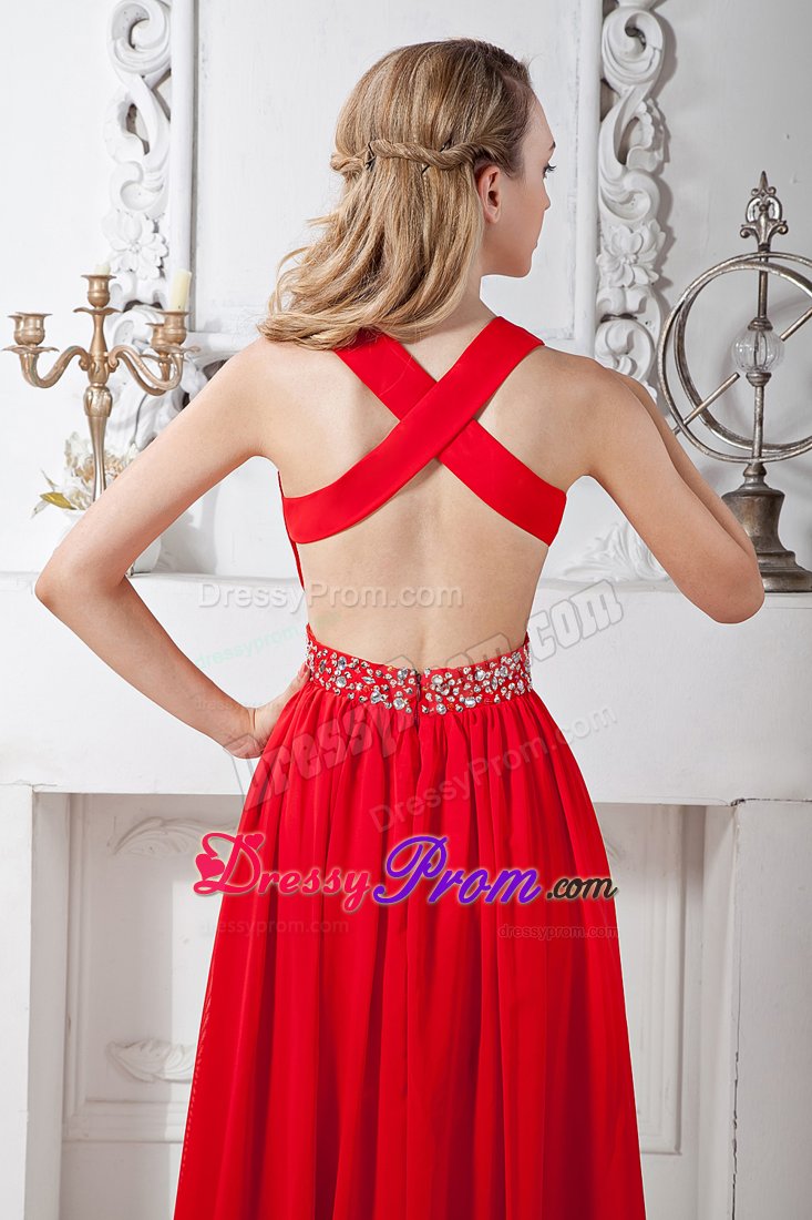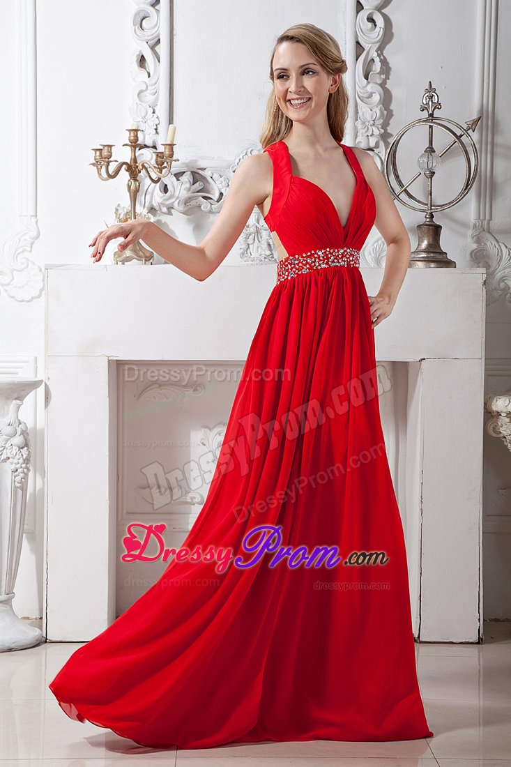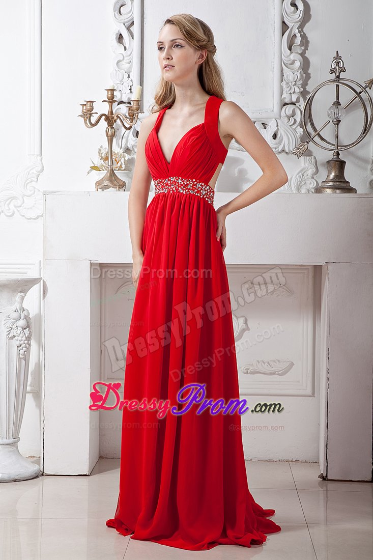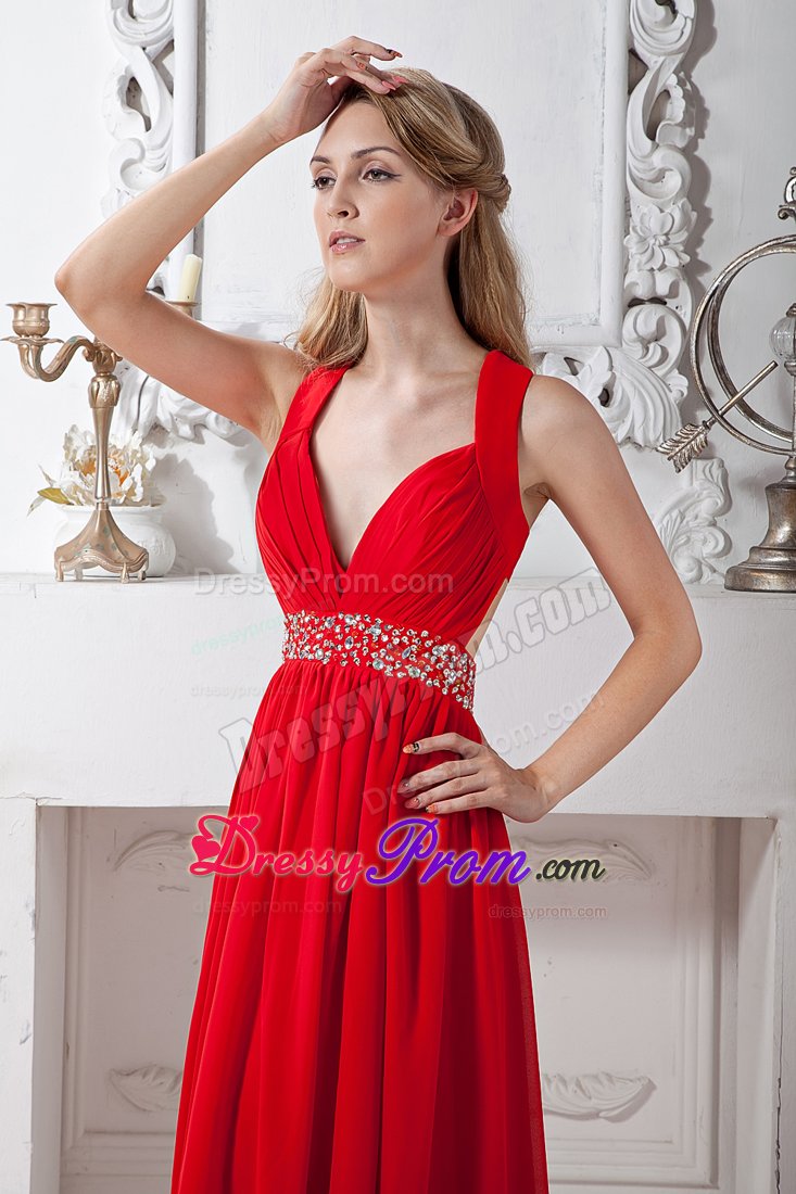 Heads will turn as you arrive at your wedding or formal in this sexy long dress. This dress features with wide straps V-neckline and ruched empire bodice. The beadings on the waistline make this dress more charming. The open back will make you more attractive. A hidden zipper makes for easy off and on and secures the dress in place.