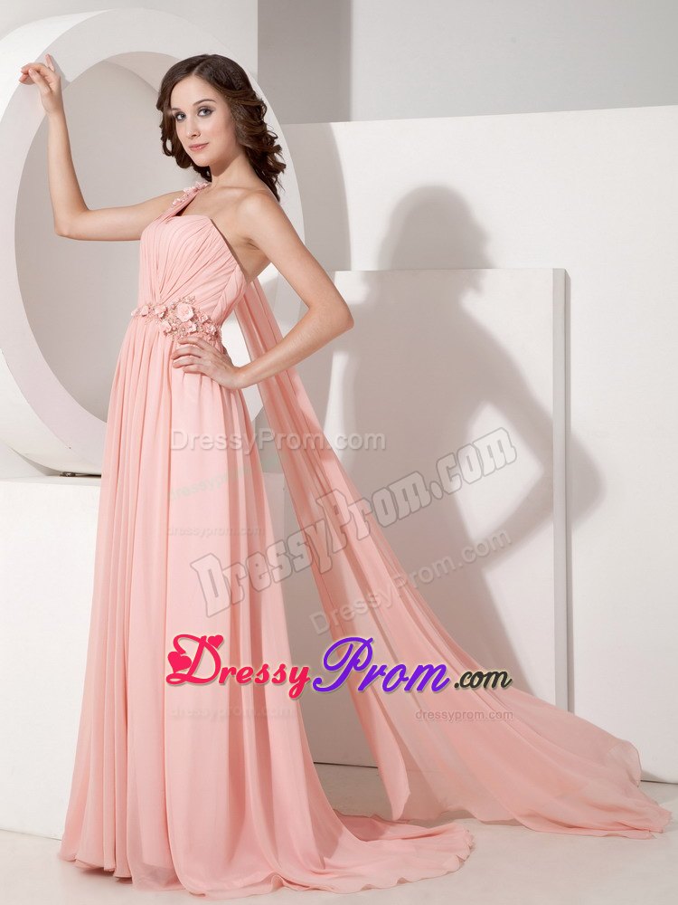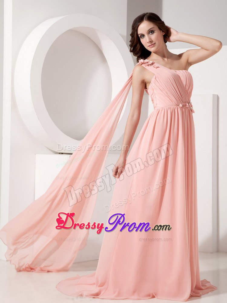 Simple dresses can leave lasting impressions. The design, usually, is all in the detail. It features a oneshoulder bodice with a intricately rosette accent bands across the mid-section. The bodice also has a nice wrapped texture that adds even more detail. The skirt has an empire waist and is lightweight. It is made from light fabric that work beautifully to create a flattering silhouette give the whole dress a romantic touch. Silhouette: Empire