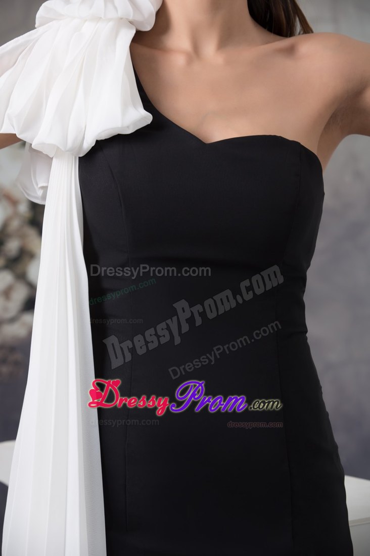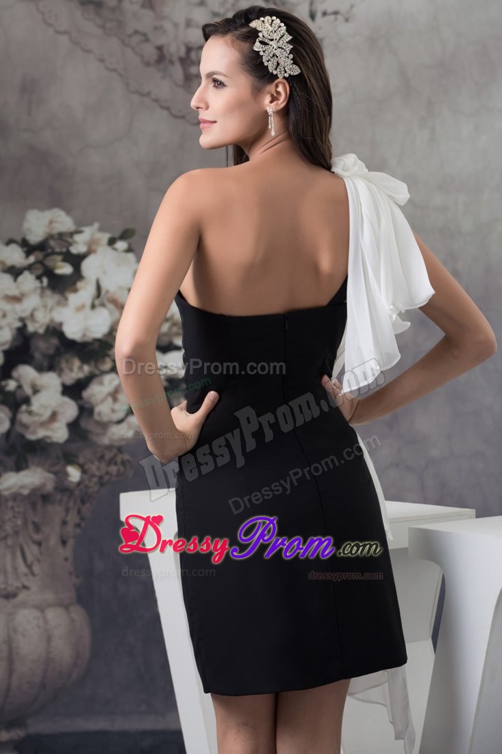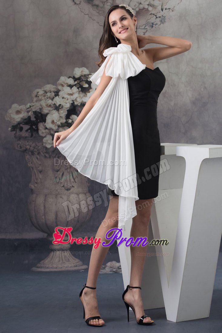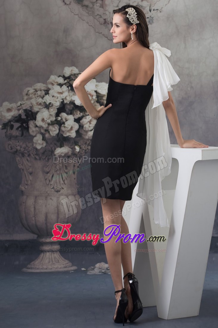 Add an air of elegance to any occasion in this unique short one sleeve dress. A beautiful black short dress featuring an one-shoulder neckline accented with one cup sleeve. A close-fitting mini-length skirt accentuates your curves. One the back, the big white shawl adds the dramatic look for the dress. This short black dress is chic and unique.